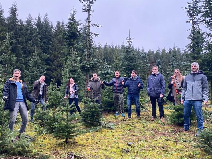 Das gemeinsame Einläuten der Weihnachtszeit fand dieses Jahr unter Einhaltung der 2G-Regel im schönen Sauerland beim Tannenbaumschlagen statt. Mit festem Schuhwerk und einer Säge ausgestattet konnte sich jedes Teammitglied einen Weihnachtsbaum aussuchen und diesen selbst schlagen. Mit vereinten Kräften und mit viel Spaß wurden die gesägten Bäume dann aus dem Wald getragen. Nach getaner Arbeit stärkte sich das Team am knisternden Holzofen mit kulinarischen Köstlichkeiten und Glühwein.
